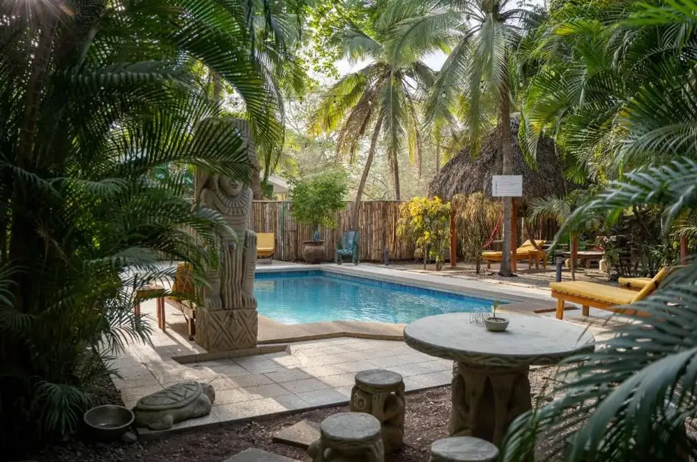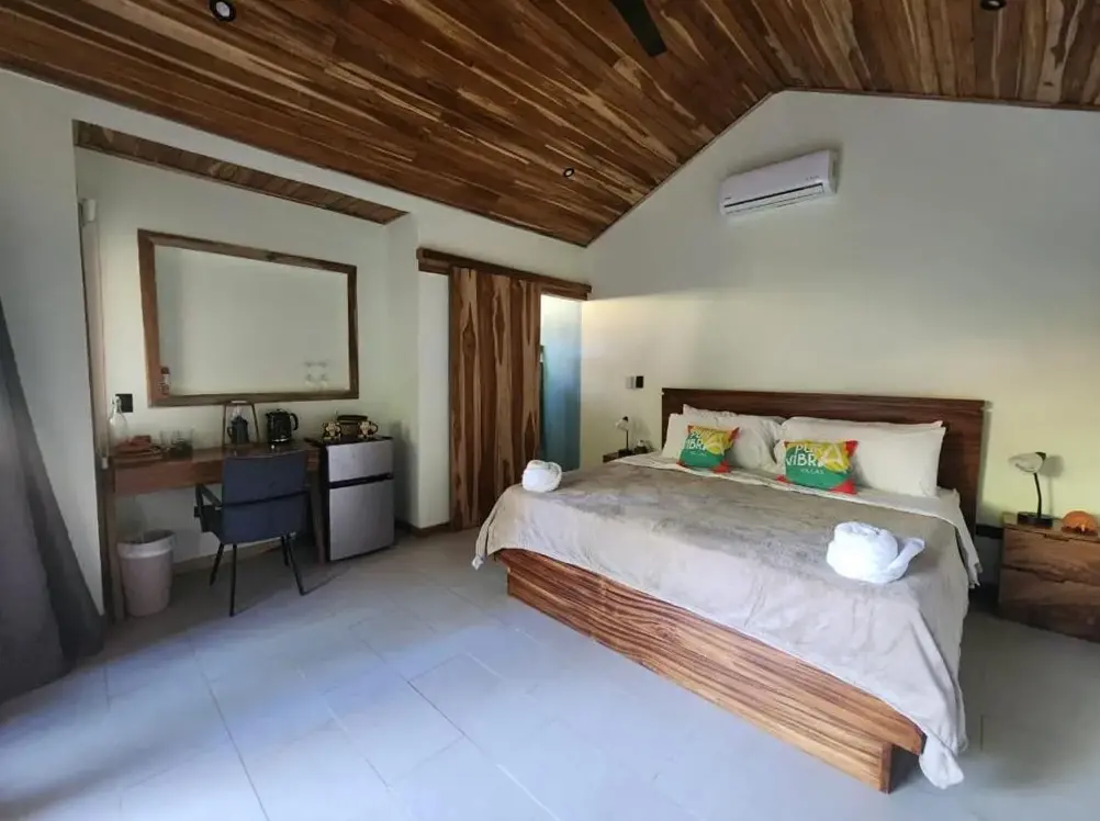 Las Villas Pura Vibra ofrecen un alojamiento tranquilo y funcional ubicado a solo 500 metros de la playa Potrero, ideal para quienes buscan comodidad sin renunciar al contacto con la naturaleza. El lugar destaca por sus habitaciones amplias, algunas equipadas con nevera y fregadero, lo que las convierte en espacios versátiles comparables a pequeñas casas independientes dentro de las instalaciones. Entre sus servicios se incluyen desayunos incluidos, acceso gratuito a internet Wi-Fi, piscina exterior para relajarse después de explorar los alrededores o simplemente disfrutar del clima costarricense, así como transporte desde el Aeropuerto Internacional Daniel Oduber Quirós (ubicado a 27 kilómetros) para mayor conveniencia durante tu llegada. La atención personalizada mencionada en reseñas anteriores asegura una experiencia cálida y bien orientada sobre actividades locales como visitar el Parque Nacional Marino Ballena (aunque no está listado entre las cercanías inmediatas) o explorar playas cercanas como Brasilito Beach (3.7 km) o Playa de Penca (1.7 km). Además, su ubicación estratégica permite acceder rápidamente a opciones gastronómicas variadas: cafés especializados como Café Rey (5 km) o Tico Café (2.5 km), restaurantes temáticos como Hard Rock Cafe Guanacaste (13 km), e incluso parques naturales como el Parque de Monos (11 km). Las áreas comunes incluyen bar y restaurante propio en sitio, perfecto para cenar bajo palmeras mientras escuchas el sonido del mar levemente lejano pero presente en esta zona serrana cercana al Pacífico.